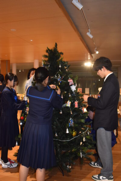 あおーよの利用者の皆さんで、1階ウェルカム・コモンと2階リフレッシュラウンジにおいてクリスマスツリーを飾り付けするミニイベントを開催し、オーナメントや電球の取り付けました!